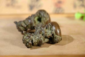 A pair of suspected copper-based tortoise-shaped ornaments from the old collection