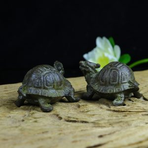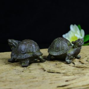 A pair of suspected copper-based tortoise-shaped ornaments from the old collection