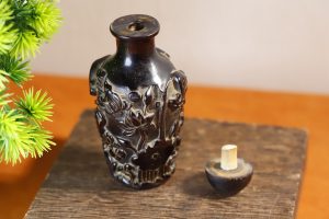 A suspected rhinoceros horn “Many Children and Much Happiness” snuff bottle