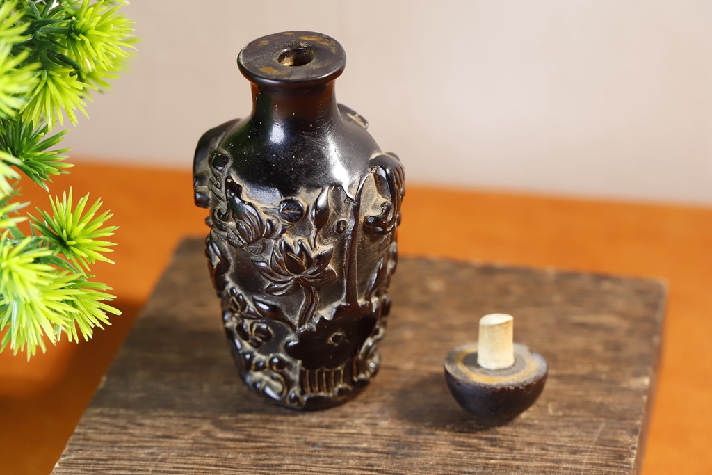 / A suspected rhinoceros horn “Many Children and Much Happiness” snuff bottle