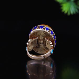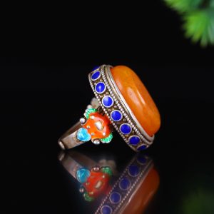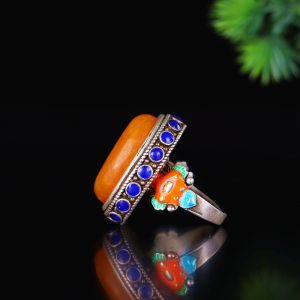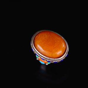 An old collection, a suspected old honeycomb amber inlaid cloisonné ring.