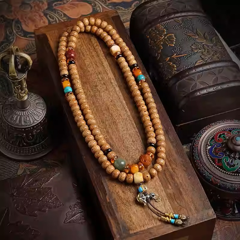 Chen Zixing Moon Bodhi Seed Bead String – 108 beads, genuine product from Hainan, decorative bracelet, for polishing and using as a Buddhist prayer bead necklace.