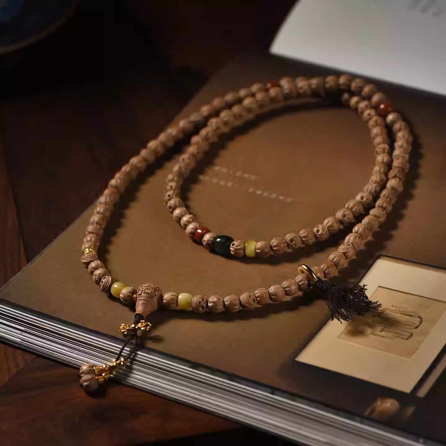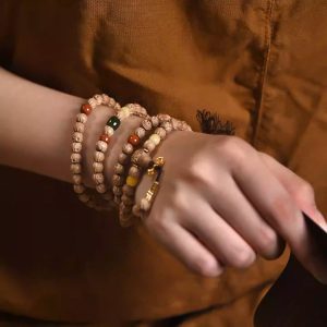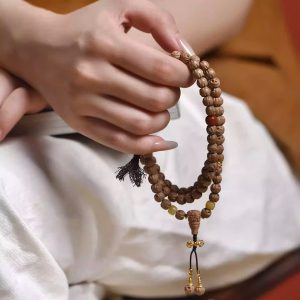 Indian old sandalwood antique Bodhi tree master 108 Buddha beads decorative bracelet with beads for holding and wearing, a string of prayer beads hand chain
