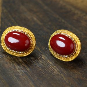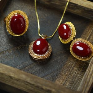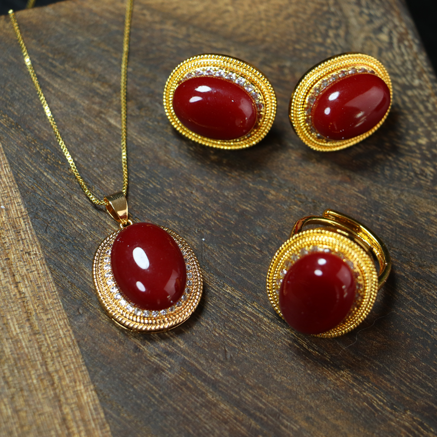 Luxurious inlaid and assembled coral cabochon set