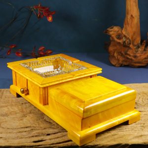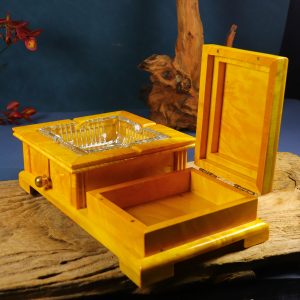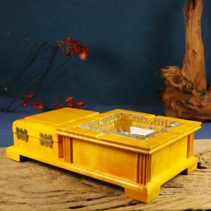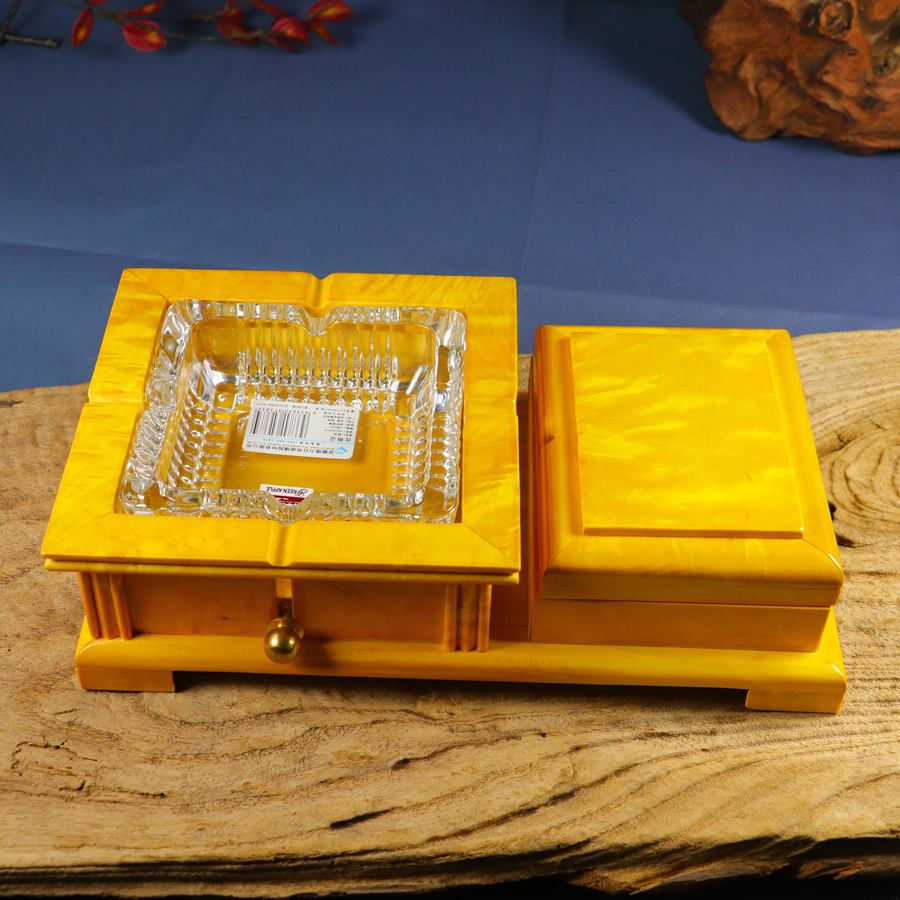 Natural large-leaf golden-threaded Phoebe wood water wave pattern inlaid ashtray