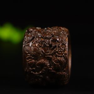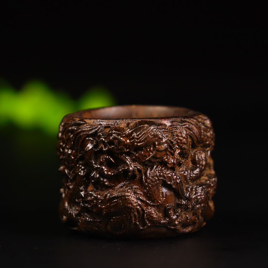 Natural old material black agarwood dragon-shaped finger guard with the theme of the dragon protecting its master.