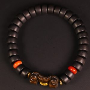 / Natural old material black chienan agarwood medicine tablet beads with five sutra hand card single circle bracelet