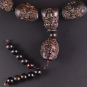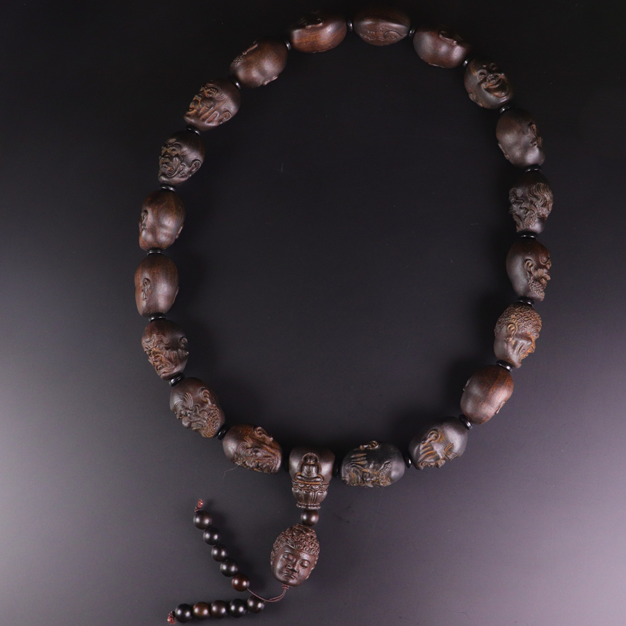 Natural old material black kanchanamari agarwood carving of a Bodhisattva holding a staff