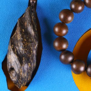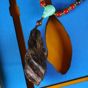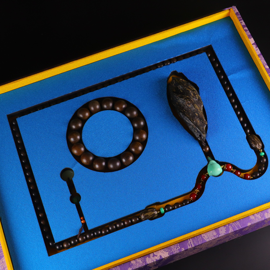 Natural old material Hainan insect-hole agarwood bracelet and necklace luxury setThere is a certificate.