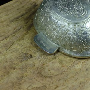 / Old collection: Gilt-silver engraved flower and bird ear cup