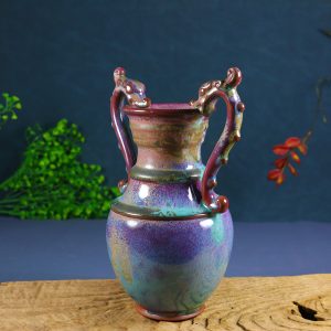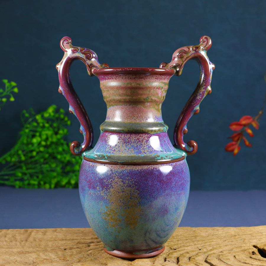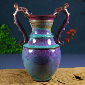 / Old collection: Jun ware glaze-changing green and yellow double dragon-ear vase ornament