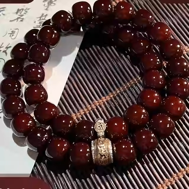 Ten-year aged raw material Bodhi root bracelet for men, featuring twelve zodiac signs and two rings of Bodhi seeds. It is a Buddha bead bracelet for polishing and wearing.